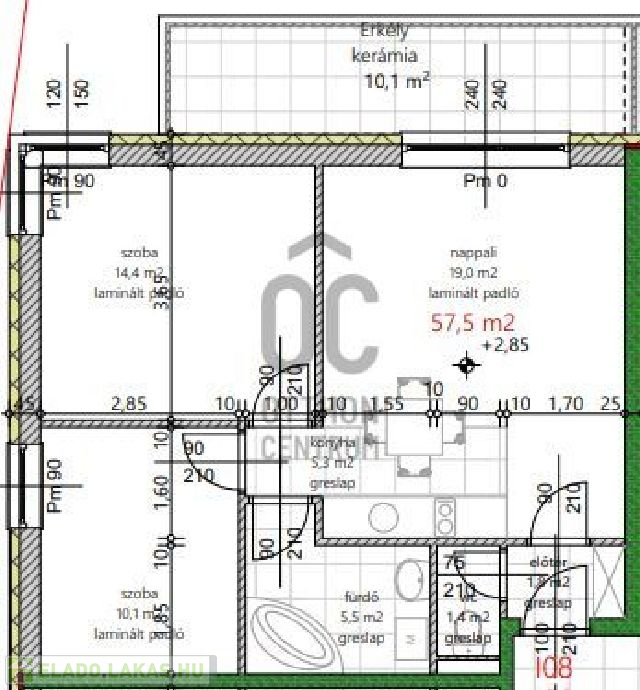 Az ingatlan alapterülete 57,5 négyzetméter, amely három kényelmes szobát rejt magában, így bőséges teret biztosít a mindennapi élethez.