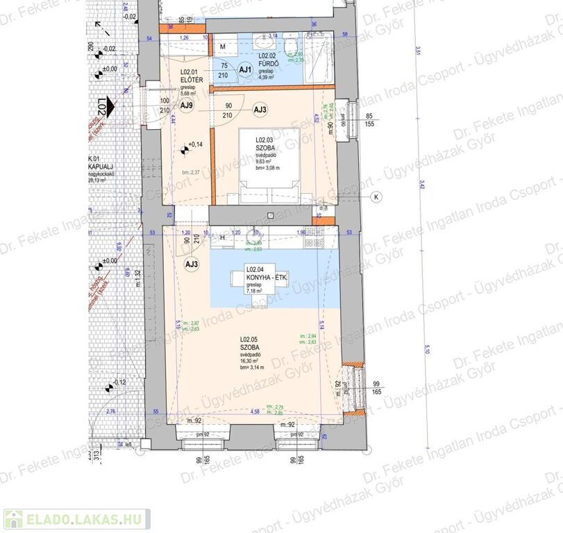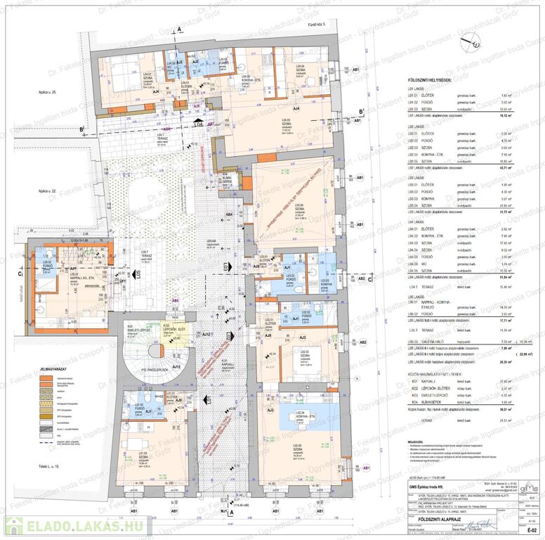 L02: 43,71 nm, földszint, nappali + 1 szoba, NY-i fekvés, 2 oldalról világos lakás.