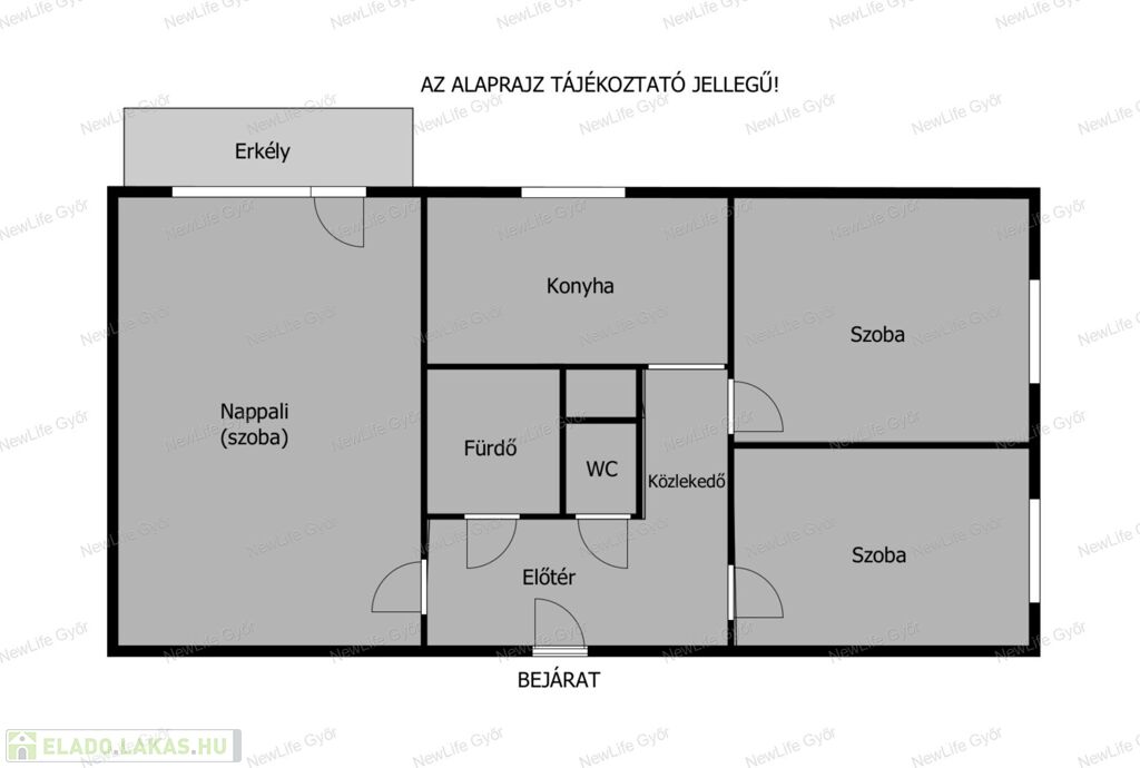 - 3 szoba (2 + 1 félszobás)