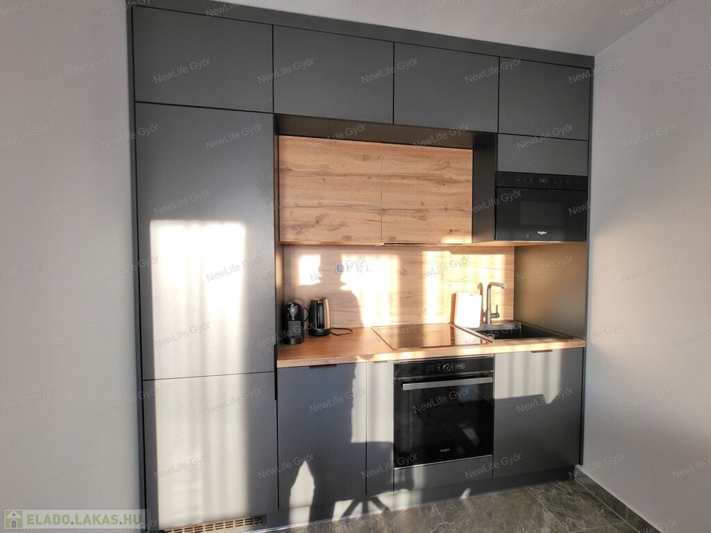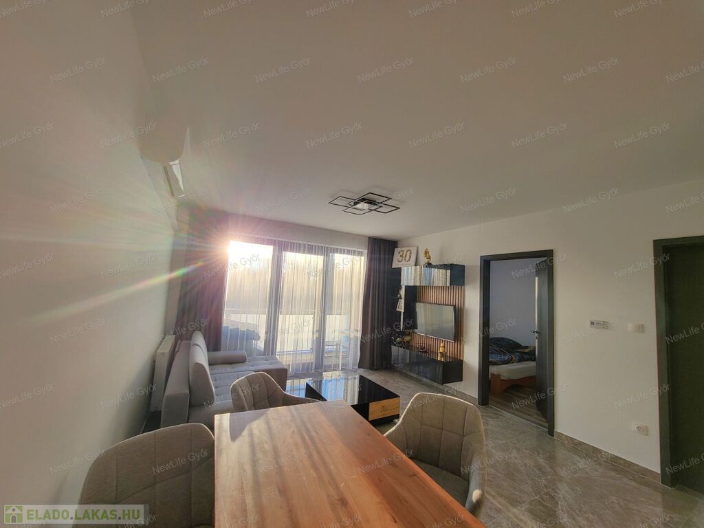 Eladó teljesen felújított, bútorozott 1. emeleti téglalakás saját parkolóval Győr-Ménfőcsanakon – azonnal költözhető!
