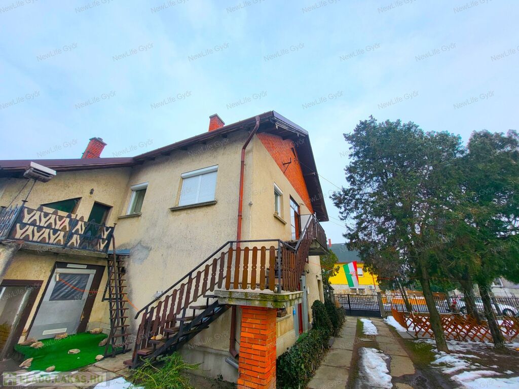 Győr–Ménfőcsanakon, frekventált, mégis nyugodt kertvárosi környezetben eladó egy kétlakásos társasház első emeleti, külön bejáratú lakása, amely valójában egy családi ház teljes felső szintjét jelenti, saját használatú kerttel és melléképületekkel.
