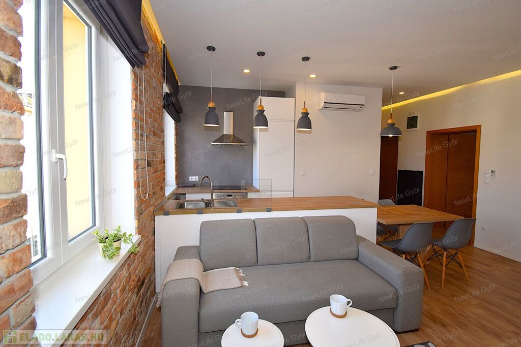 Győr-Moson-Sopron vármegye, Győr, Belváros, felújított dizájnos lakás a Mosoni-Duna partján