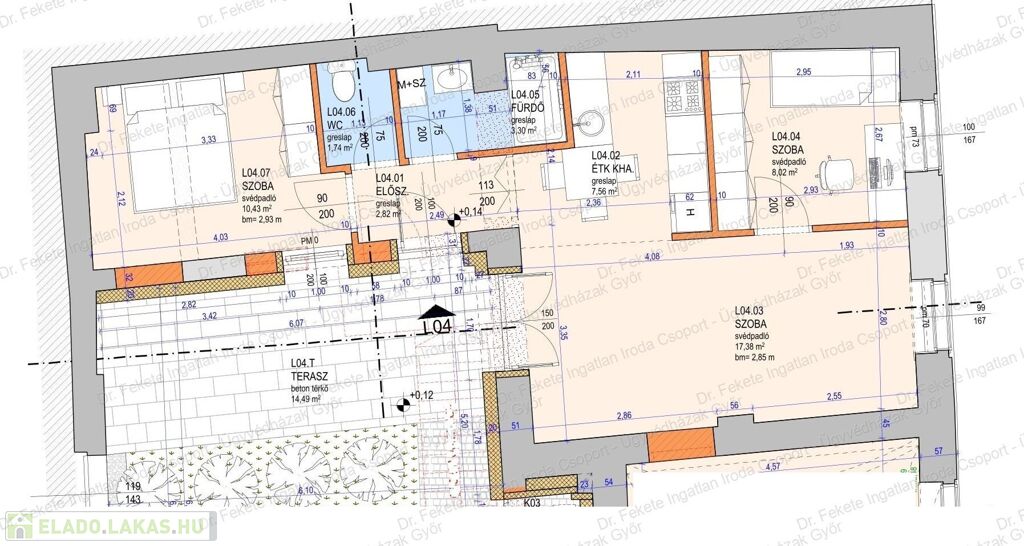 L04 - földszinti 51,25 nm, 3 szobás lakás, + 15,46 nm terasz, D-DNY-i fekvés.