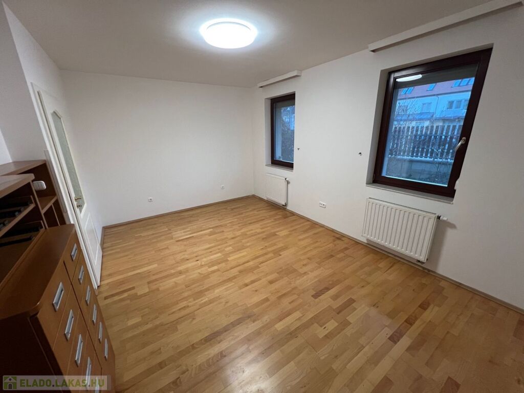Győr-Nádorváros, kedvelt részén, a 2000-es évek második felében épült társasház földszintjén, 66 m2-es lakóterülettel rendelkező, 2 szoba, konyha-étkezős, előszobával, kamrával, különálló fürdővel, wc-vel rendelkező lakás, 9 m2-es terasszal, cirk. 49 m2-es saját használatú kerttel eladó. A lakáshoz tároló és teremgarázsbeálló is tartozik.