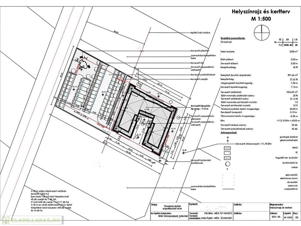 A társasház egy 3228 m2-es hatalmas telekre épült.
