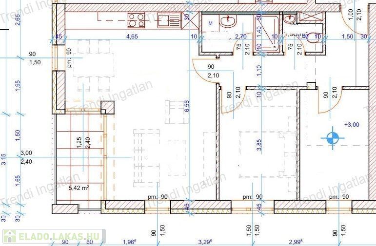 Az ingatlanban tágas, amerikai konyhás nappali, 2 szoba, fürdőszoba, WC, közlekedő található. A nappaliból 5,43 nm-es erkély nyílik.
