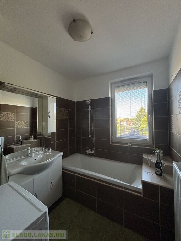Győr kedvelt, természetközeli, kertvárosias részén, Révfalu és Kisbácsa találkozásánál eladó egy teljes körűen felújított, 74 m²-es, nappali + 2 hálószobás, gépkocsi-beállóval rendelkező 1. emeleti tégla lakás egy csendes, négy lakásos társasházban, egy zárt és egy utcai gépkocsibeállóval.