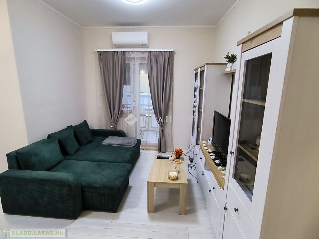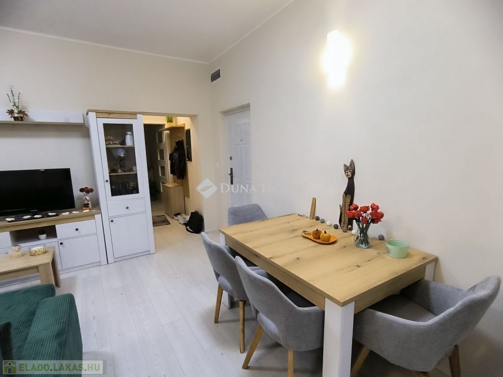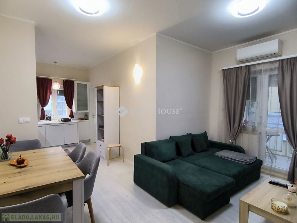 Főbb jellemzők:- amerikai konyhás nappali, étkezővel- a konyha modern, beépített gépekkel (hűtővel, sütővel és mosogatógéppel)- hálószoba + félszoba- kádas fürdőszoba- kamra- erkély, amely ideális reggeli kávézásokhoz vagy esti pihenéshez. Felújítás és felszereltség:- a lakás teljes körű felújított- új műanyag nyílászárók redőnnyel és szúnyoghálóval- padlófűtés és klíma.További előnyök:- saját garázs- saját tároló a lakáshoz- kerthelyiség gyümölcsfákkal ideális kertészkedéshez vagy kikapcsolódáshoz- a lakás igény esetén a modern, új bútorokkal együtt is megvásárolható.A lakáshoz tartozik egy zárt udvarban található garázs, plusz egy egyéni tároló.A társasháznak közös hátsó udvar van . Akár az otthon keresésében van, akár befektetési célból vásárolna, ez a lakás tökéletes választás lehet.Ne hagyja ki ezt a ritkán adódó lehetőséget, hogy saját otthona legyen egy napfényes, megbízhatóan fűtött, kiváló állapotú és elhelyezkedésű téglalakásban. Vegye fel velem a kapcsolatot még ma, hogy megtekinthesse álmai otthonát!Irodánk díjmentes, bank független hitelügyintézéssel áll rendelkezésére.