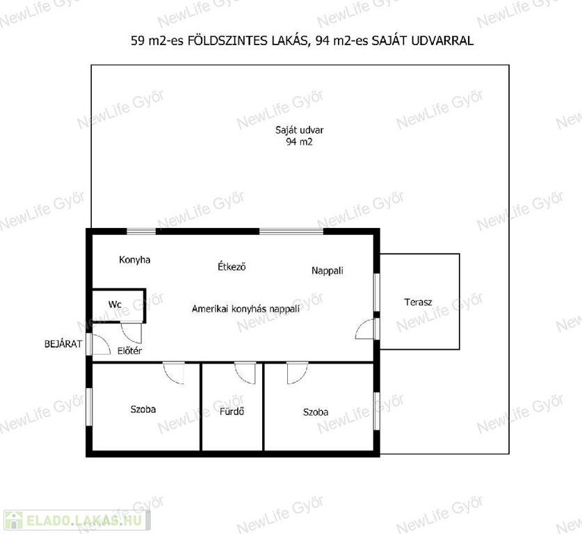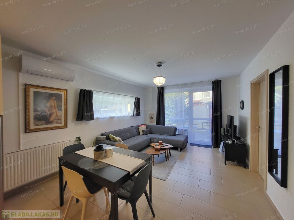 Eladó Győr egyik legkedveltebb, csendes kertvárosi részén, Ménfőcsanakon egy 2016-ban épült, újszerű állapotú, 59 m²-es földszinti lakás, amelyhez egy 94 m²-es, teljesen körbekerített saját udvar tartozik.