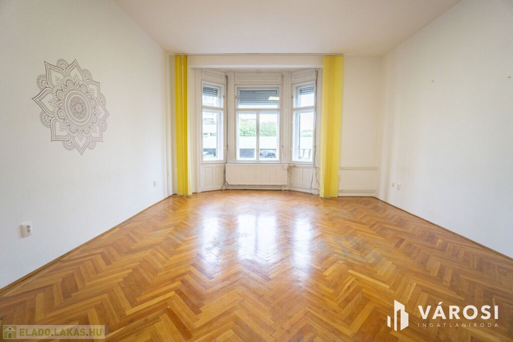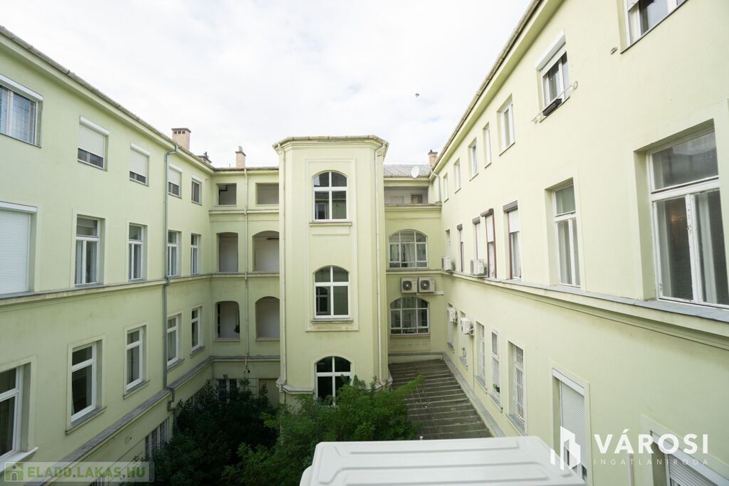 Győr történelmi belvárosában, az egyik legszebb belső udvarral rendelkező, három szintes épületében található ez a második emeleti, 94 m²-es, tágas és világos lakás.