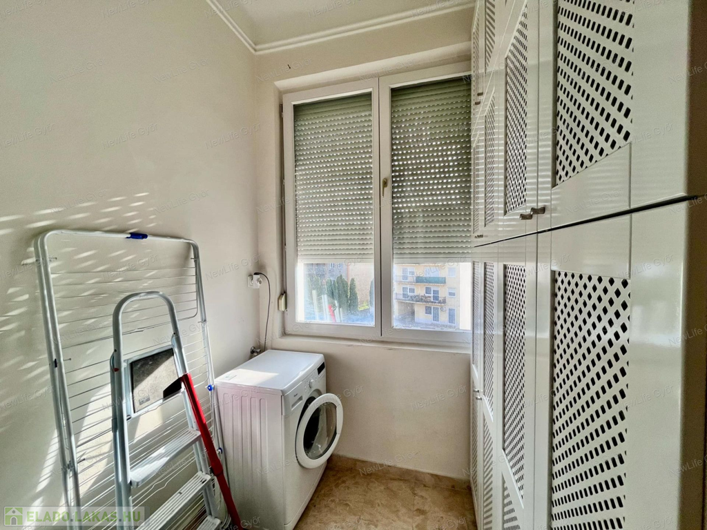 A loggia jelenleg be van építve, így egy külön kis háztartási helység lett kialakítva benne, de az ablak rész könnyen kiszedhető, ezáltal újra erkélyes lakássá változtatható az ingatlan.