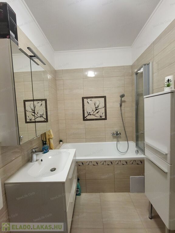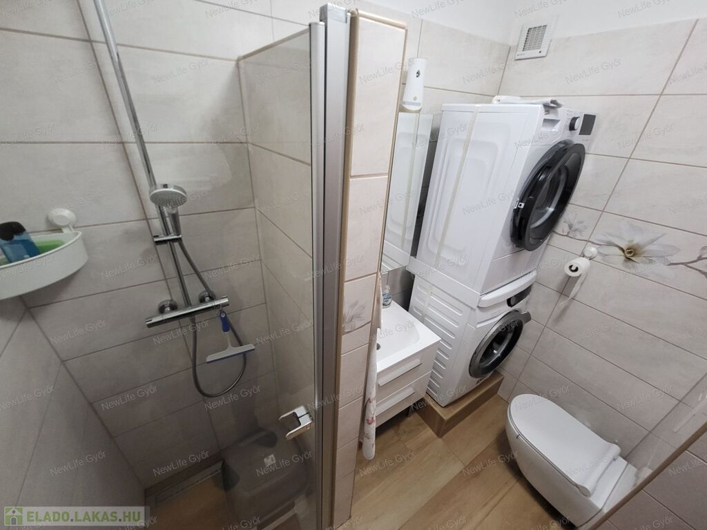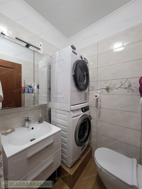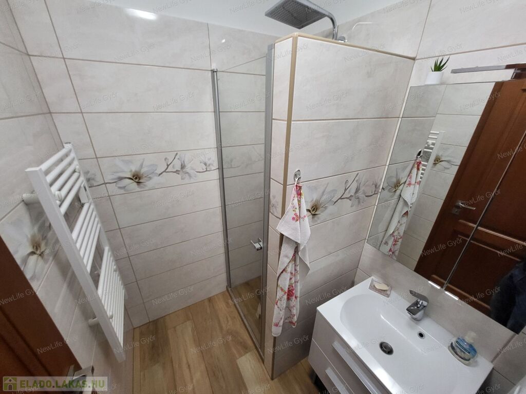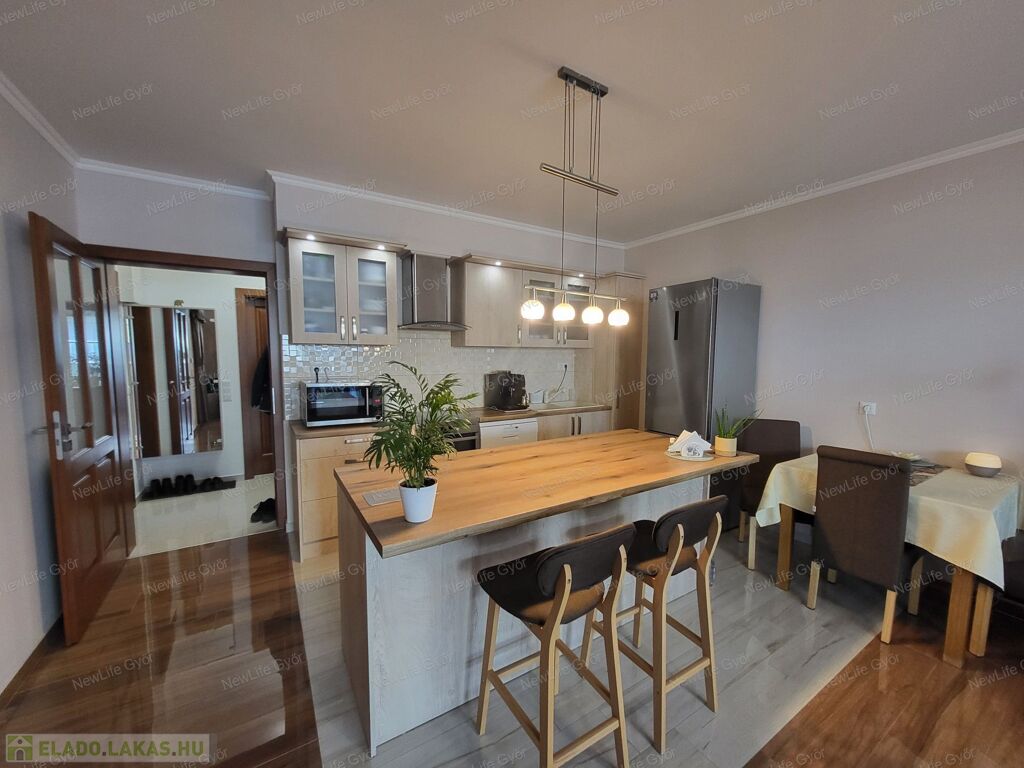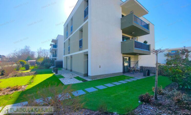 Győr egyik legkedveltebb, mégis nyugodt részén, Szabadhegyen, a Panoráma Liget zárt, igényes lakóparkjában található ez a 2021-ben épült, földszinti, kertkapcsolatos luxuslakás. Az utca csendes, átmenő forgalomtól mentes, mégis minden karnyújtásnyira van: buszmegálló egy perc sétára, a közelben iskola, óvoda, üzletek, pékség, gyógyszertár – a mindennapok kényelme adott.