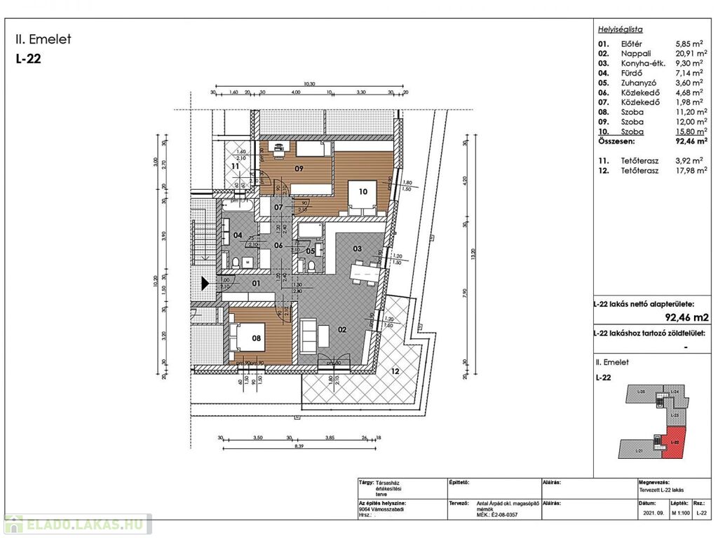 L22 – 2. emelet, 92,46 m2 + 22 m2 erkély bruttó 95.654.250 Ft