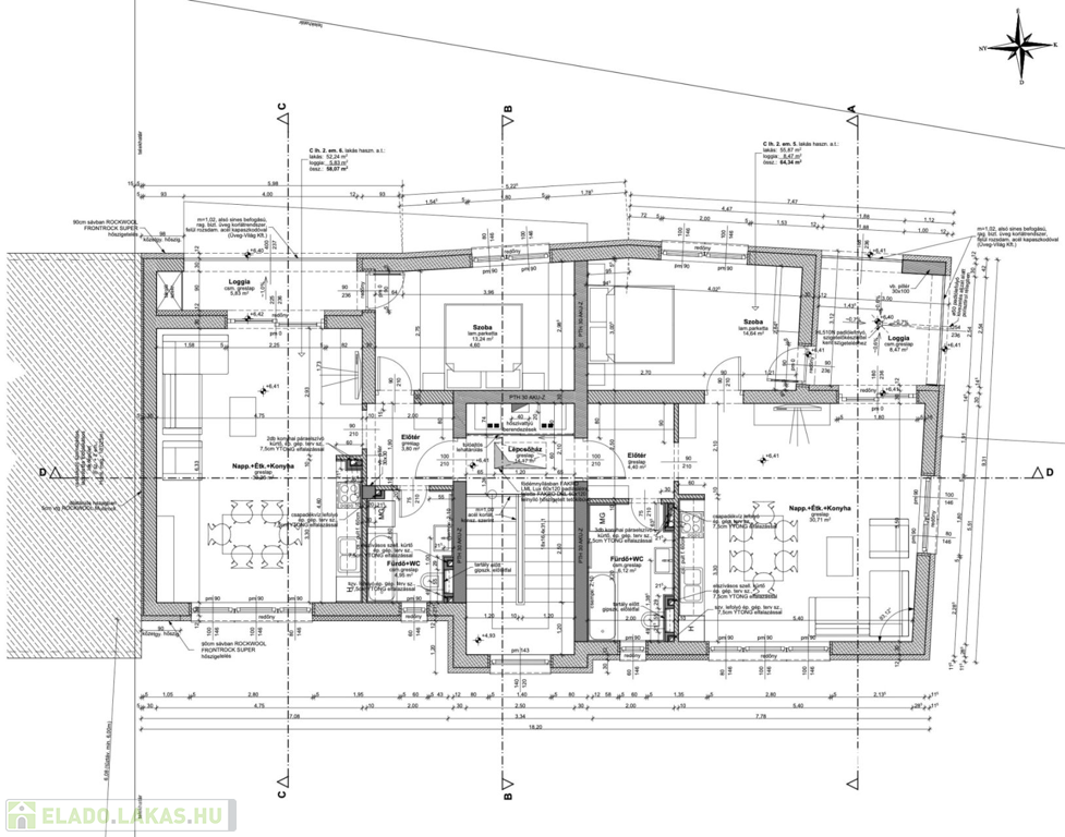 - alapterület: 78,32 nm-es (amerikai konyhás nappali+3 szoba, 2 fürdőszoba, erkély), 82 nm-es (amerikai konyhás nappali+2 szoba, gardrób, loggia, WC, fürdőszoba), 64,37 nm (amerikai konyhás nappali+1 szoba, előtér, fürdőszoba, loggia), 58,1 nm (amerikai konyhás nappali+1 szoba, előtér, fürdőszoba, loggia)
