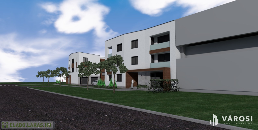 Ingatlanok: 2 épületrészből álló, kétszintes társasházban 13 lakás és 9 garázs mellett 3 iroda is ki lesz alakítva, melyek közül néhány már gazdára talált.