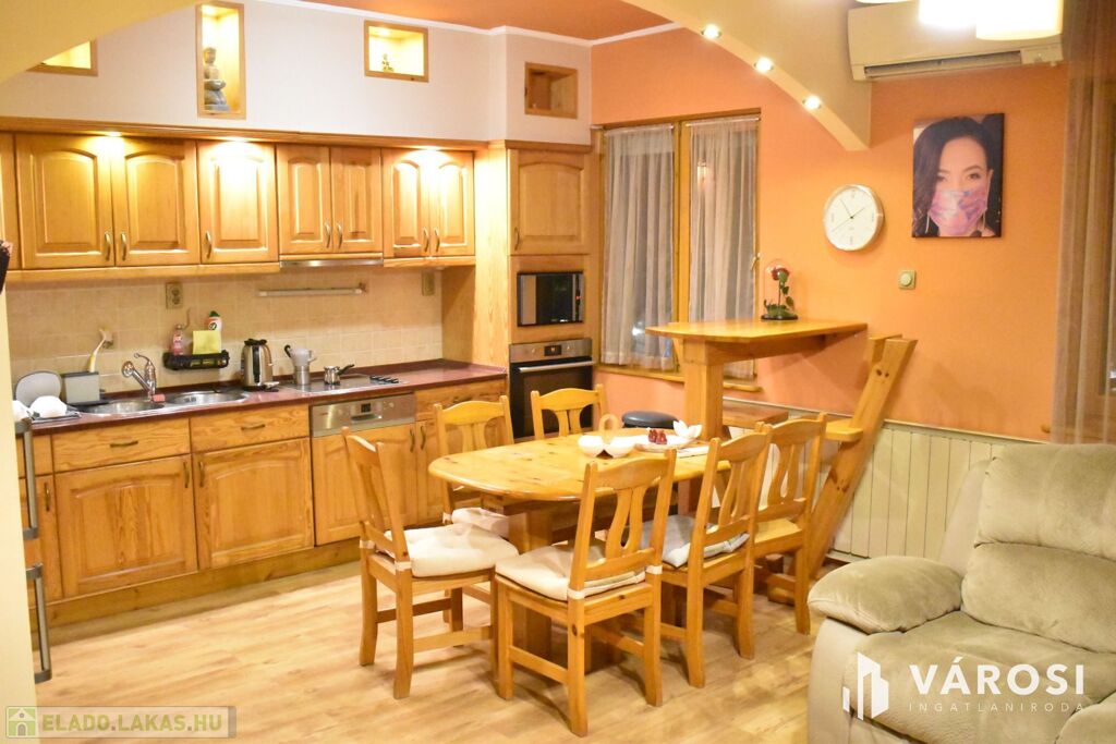 Eladó Gyula központi városrészen, a Kossuth téren egyedi panoráma kilátással rendelkező, szépen felújított 3 szobás, amerikai konyhás tégla lakás. Az ingatlant 2017 évben újították fel, mely során a konyha, fürdőszoba, közlekedő, Wc helységek szép hidegburkolatot kaptak, továbbá a nyílászárók is cserélve lettek új fa, hőszigetelt nyílászárókra. A lakás elektromos vezetékei is cserélve lettek (3 fázisra lett bővítve a hálózat, illetve „H” tarifa is van). A lakás fűtéséről egy modern Viessmann gázkazán és lapradiátorok, valamint egy inverteres (hűtő-fűtő) klímaberendezés gondoskodnak. Az ingatlan elektromos fűtése igen hatékony a „H” tarifás áramnak és a nagy teljesítményű klímának köszönhetően. Az ingatlan egyedi átalakításának köszönhetően a nappali és a konyha rész egy légtérben található, ahol egy nagyon szép, minőségi gépekkel ellátott konyhaszekrény található. A felújítás során több kényelmi eszköz is be lett építve, mint pl. elektromos redőnyök és költséghatékony led világítások. A lakás elosztása hibátlan, mivel az összes helysége a közlekedőről külön-külön megközelíthető. A lakáshoz tartozik egy felújított erkély is, amely csodálatos panorámával rendelkezik a város központjára. Az ingatlanhoz tartozik egy közös tárolóhelység. A lakás ára tartalmazza a teljes, minőségi bútorzatot és a beépített műszaki tárgyakat (MILE mosógép, mosogatógép, hűtőszekrény, bőr-dönthető ülőgarnitúra stb.)