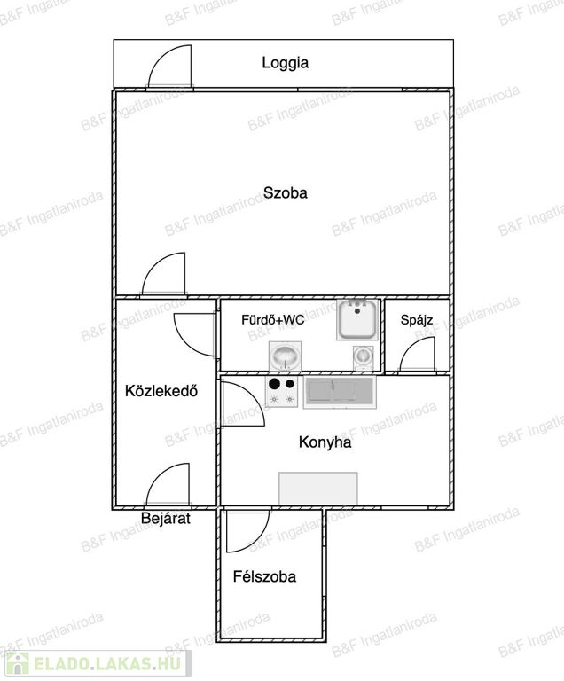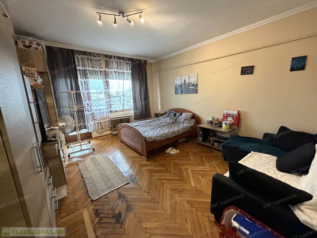 A lakásban egy tágas szoba és egy praktikus félszoba található, így a tér kihasználása rendkívül sokoldalú.