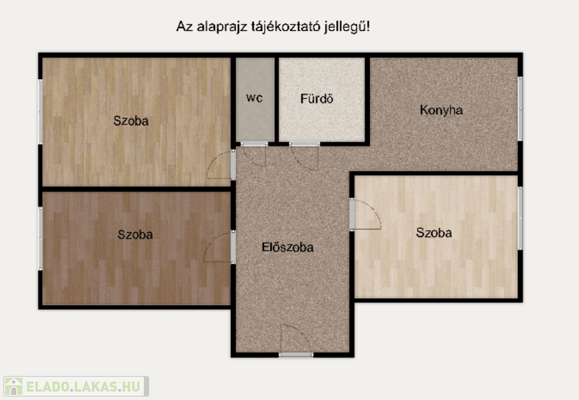 A 4 emeletes házban található lakás 3 különálló szobával, kényelmes méretű előtérrel, konyhával és a fürdő -wc külön kialakításával rendelkezik.
