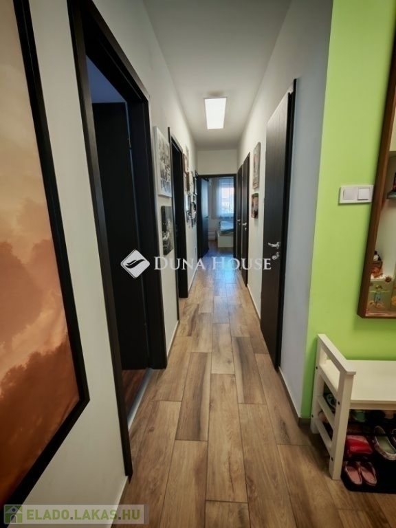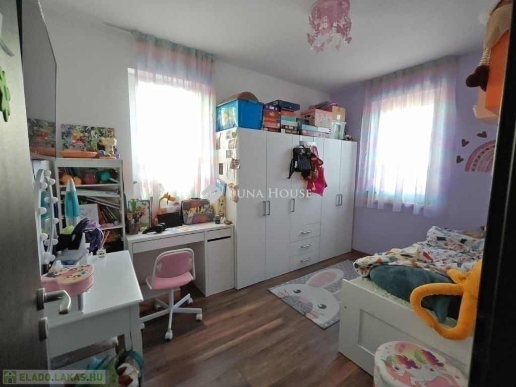 Halásztelek csendes, családias részén eladó egy hibátlan állapotú 2021-ben épült, földszinti lakás, amely 96 m²-es alapterületével és a nappali + 4 hálószobás kialakításával ideális választás lehet családok számára is.