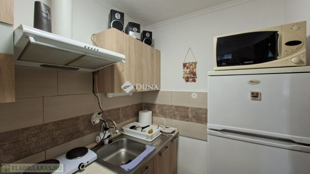 Eladó Harkányban, a Bartók Béla úton állandóan lakott üdülőházban, egy 35 nm-es, nagyerkélyes lakás garázzsal!- A tégla építésű társasház, egy szép, gondozott, parkosított telken helyezkedik el, automata kapuval felszerelve, autóbeállási lehetőséggel, továbbá saját külön helyrajzi számmal rendelkező garázs tartozik a lakáshoz, amelynek az árát a vételár tartalmazza.- A lakás a 3/3. emeleti, a közelmúltban felújításra került a konyha, a fürdő, és a nyílászárók cseréje is megtörtént, és a tetőszigetelés is teljesen új.- Elosztása: előszoba, konyha, fürdő WC-vel, nappali, erkély.- Fűtése villanykályhával és klímával megoldott, a vizet villanybojler szolgáltatja.- Kiváló választás befektetésre is, hiszen egész évben kiadható.Nézzük meg együtt, további információkért keressen bizalommal!