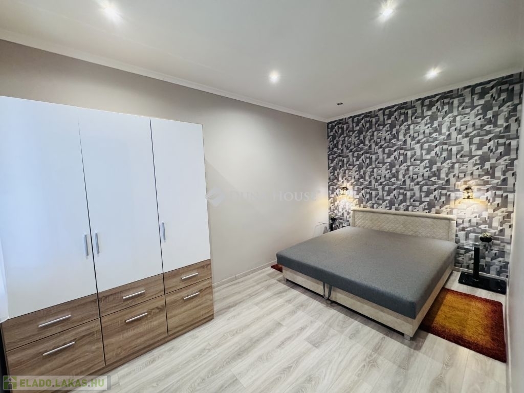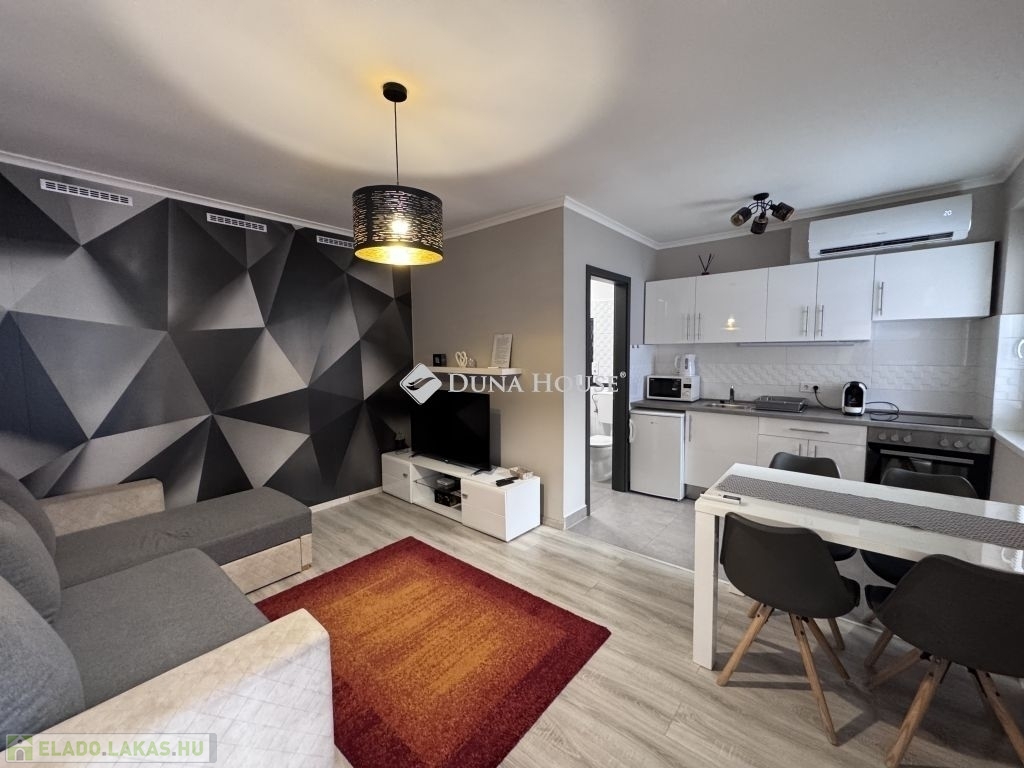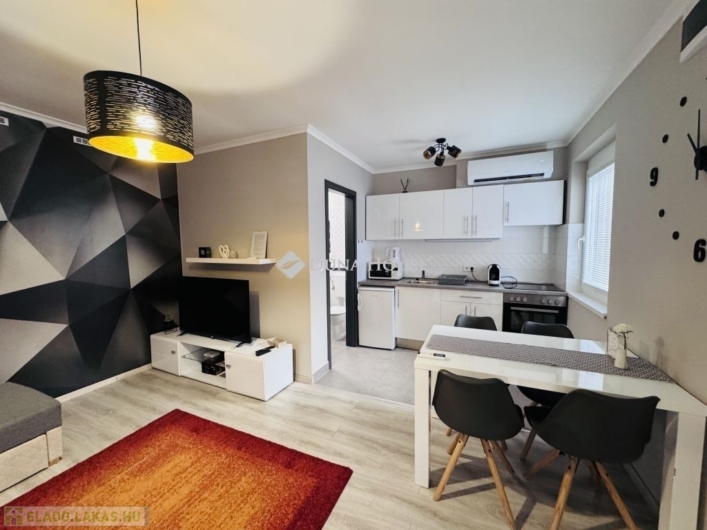 Harkány csendes, rendezett részén, egy háromlakásos társasház földszintjén kínálom megvételre ezt a teljes körűen felújított, kertkapcsolatos lakást, teljes berendezéssel.Az ingatlan minden részlete gondosan megtervezett és karbantartott, a felújítás után gyakorlatilag új állapotban várja leendő tulajdonosát. A lakás fűtése energiatakarékos klímával megoldott, a nyílászárókra elektromos redőnyök és szúnyoghálók kerültek. A ház külső homlokzata 5 cm szigeteléssel, a tető pedig 15 cm kőzetgyapottal ellátott, ami kiváló hőszigetelést biztosít.A lakás teljes bútorzattal és felszereléssel kerül átadásra: a TV, bútorok, háztartási eszközök és minden berendezési tárgy a vételár részét képezi, így az ingatlan akár azonnal költözhető vagy kiadható.A ház előtt egy, akár két autó számára is kényelmes parkolási lehetőség biztosított.Kiváló választás állandó lakhatásra, nyaralónak vagy befektetési célra egyaránt.