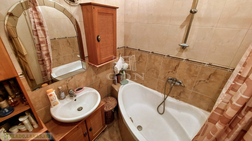 A fürdőszobában sarokkádat találunk, a WC külön helyiségben lett elhelyezve.