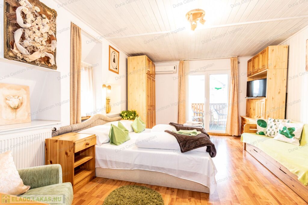Hévíz egyik legkedveltebb , csendes utcájában három szintes társasházi lakás eladó. Az ingatlan földszinti részén tágas nappali, amerikai konyha-étkező, fürdőszoba található. Az emeleten kettő hálószoba, kettő fürdőszoba, míg a tetőtérben egy szoba, fürdőszoba kapott helyet. Az ingatlan felújított, új nyílászárók, külső szigetelés, új cserép tető várja az új tulajdonosokat. A fűtés modern hűtő-fűtő klímával, gázkazánnal, illetve vizteres kandallóval is megoldható. A lakáshoz nagy terasz, illetve kettő gépkocsibeálló is tartozik. Az ár a teljes berendezést tartalmazza !!