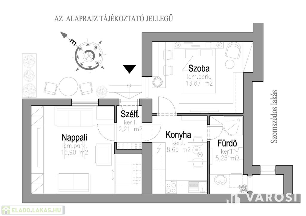 - Nappali: ~17,00 m2
