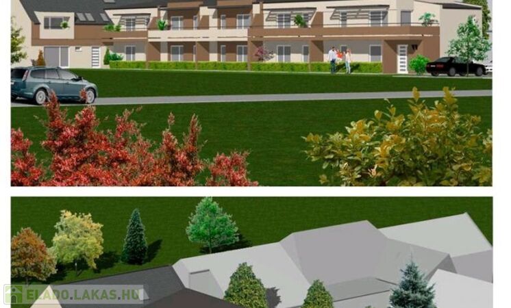 Jánossomorja központi részén épülő társasházban 1 emeleti, 40m2 nettó lakóterületű, nappali plusz 1 hálószobás, 11,8m2-es terasszal rendelkező téglalakás eladó.