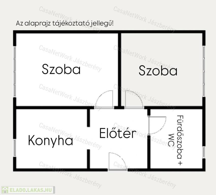 - Helyiségek: előtér, konyha, két szoba, fürdőszoba, illetve a lakás közvetlen bejárata mellett egy spájz (1,46 m2) is található, mely szintén az ingatlan részét képezi.