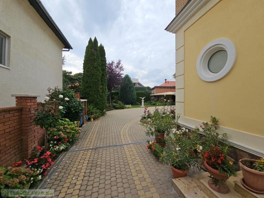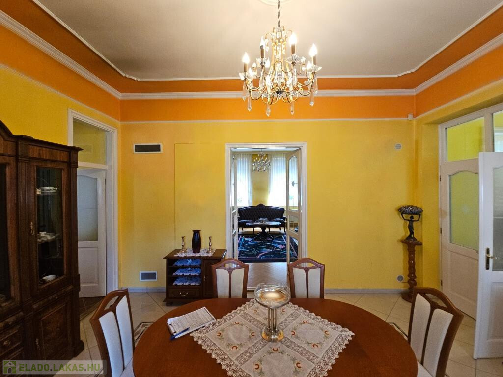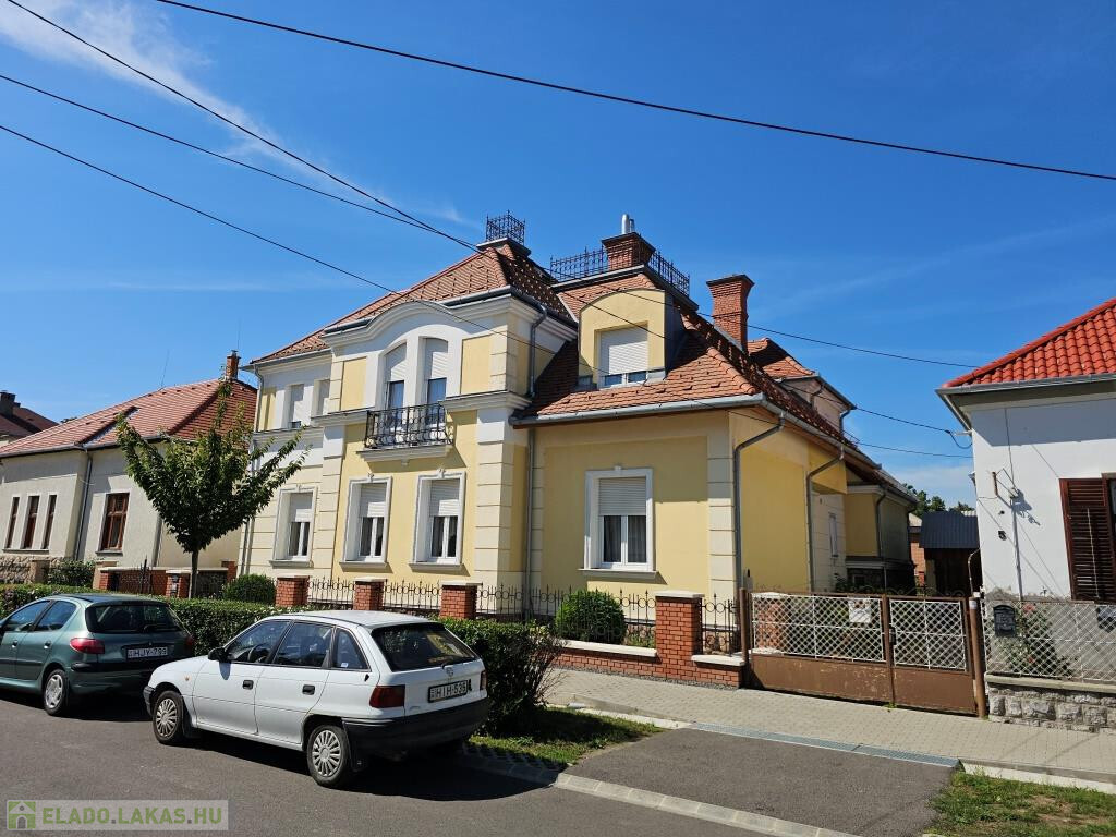 Kaposvár egyik legszebb utcájában, a Kassa utcában kínáljuk megvételre ezt az igazán igényesen megtervezett és felújított, kibővített elegáns kétlakásos polgári családiház önálló földszinti lakását a hozzá tartozó teljes telekkel. Az étkező helyezkedik el középen, ide csatlakozik a délnyugati fekvésű, kert felé néző kellemes terasz, illetve innen nyílik minden további helyiség közvetve vagy közvetlenül. Van három tágas, keleti tájolású szoba - a szélső déli ablakkal is ellátva, - fürdő zuhanyzóval és káddal, külön WC, valamint a konyha. Plusz egy háztartási helyiség, ami részben mosókonyha, részben tároló, de itt kapott helyet a kazán és a bojler is. Mindhárom szoba megközelíthető külön is, de az első és a középső át is járható. Az első, délkeleti szobának önálló bejárata nyílik a lépcsőházból is, így akár iroda funkcióra is alkalmas. A nappaliként használt középső szobában van egy üvegfalú kandalló, ami nem csupán szép és jó hangulatú, hanem hasznosan egészíti ki a cirkós fűtést. Minden külső nyílászáró SCHÜCO tip., hőszigetelt üvegezéssel, redőnnyel. A lakás alatt több részből álló pince, hátul dupla garázs és melléképület áll rendelkezésre, ezek összesen 209 m2-et tesznek ki (lakótér: 128,54 m2, terasz: 13,31 m2, pince: 28,14 m2, garázs és tárolók: 39 m2). A telek 630 m2, a garázsokig térkövezve, egyébként gyeppel borított, szépen parkosított. Mind a lakás, mind a kert kiváló állapotban vannak. A 3 fázis vételezése mind az udvaron, mind a garázsban rendelkezésre áll. Elsősorban Pécsen vagy környékén építési telket, családi házat értékegyeztetéssel beszámítunk kizárólag olyan helyen, ahol van vezetékes internet.