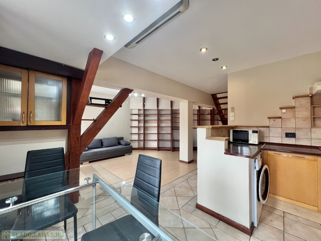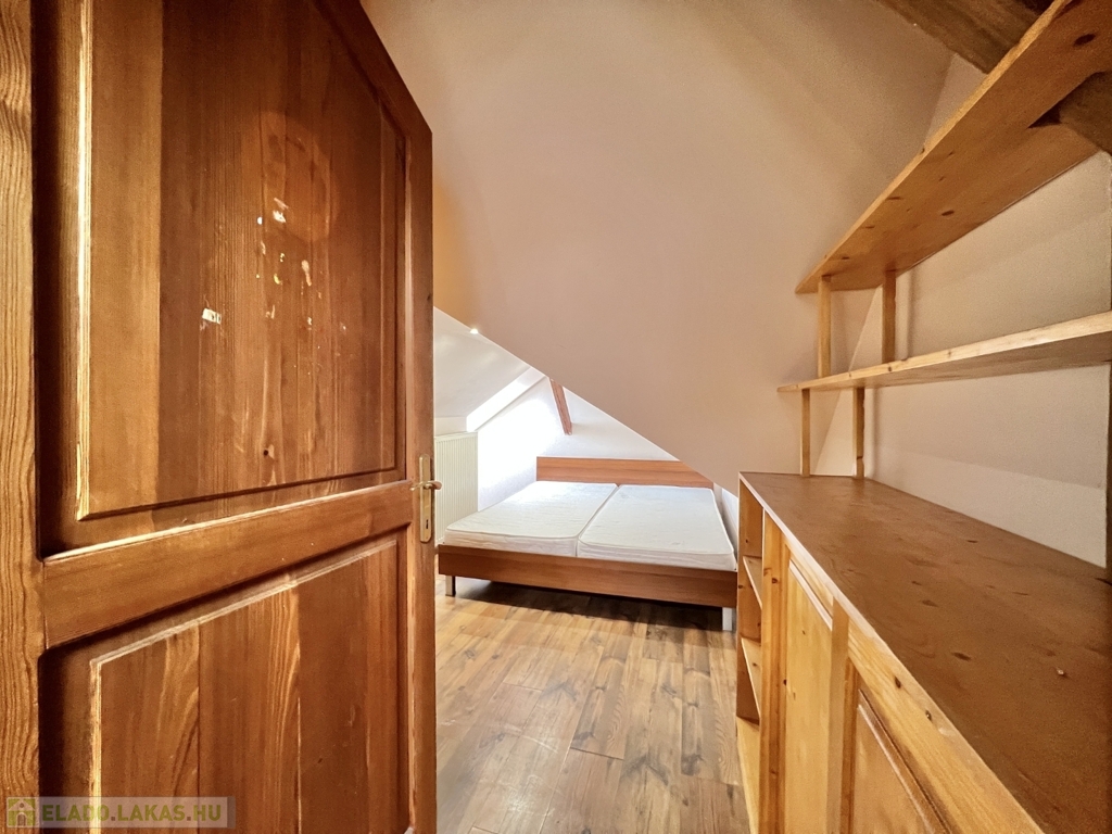 Kaposváron a belvárosban – a Fő utcában – liftes társasház, 3. emeletén lévő 60 m2-es, azonnal költözhető lakás - a képeken látható műszaki állapotban - eladó. A lakás alsó szintjén előszoba-nappali, étkező-konyha, fürdőszoba-wc helyiségek kerültek kialakításra. A tetőtérbe az előtérben lévő lépcsőfeljáró vezet fel, ahol további 2 félszoba, wc-kézmosó vannak. A lakás fűtése és melegvíz ellátása kombi gázkazánnal megoldott, valamint légkondicionáló is felszerelésre került. Az ingatlan a lokációja miatt akár befektetésnek is kitűnő lehetőség, számos közintézmény csupán néhány száz méteren belül található, például a Megyeháza, Törvényszék, Kormányhivatal, Polgármesteri Hivatal, de akár a Kossuth tér is csupán 1 perc sétával elérhető.