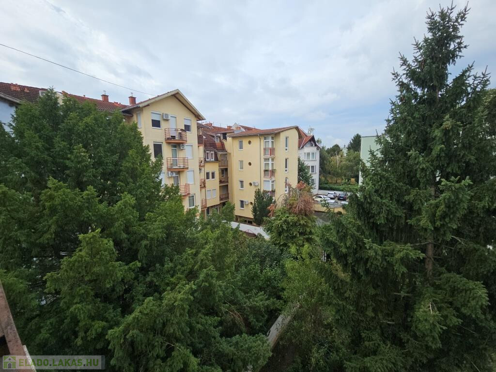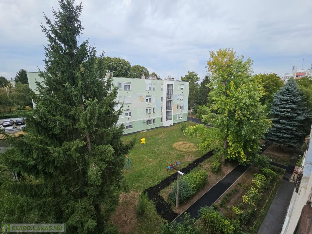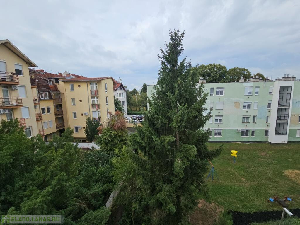 A ház csendes, zöldövezeti részen áll, így az erkélyről is parkos környezetre nyílik kilátás. A parkolás a társasház mögött oldható meg, önkormányzati regisztráció után térítésmentesen. A környék különösen családbarát: a játszótér közvetlenül a ház előtt található, az óvoda néhány lépésre, az iskola pedig mindössze pár perc séta. Emellett rövid idő alatt elérhetők a kórház, a boltok, a buszmegállók, és gyalog nyolc perc alatt a belváros is megközelíthető.