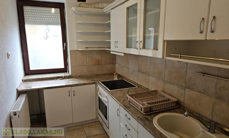 Jó állapotú, földszinti, kertkapcsolatos, 79,61 m2-es lakást kínálunk megvételre Kaposváron, a tüskevári városrészben, a Jutai úton. Belépve az előszobába jutunk, majd az étkezőként is használható hallba. Ez a központi helyiség, innen nyílik szinte minden. Bal oldalon a nappali, szemben balra a konyha, jobbra egy kicsi közlekedő, ahonnan a fürdő és a külön kialakított WC érhető el. Jobb oldalon van két, egymásból nyíló nyugati fekvésű szoba. A nappali keleti, a konyha és a fürdő ablakai déli tájolásúak, így mindig világos, napfényes az egész lakás. A nappaliból saját kertrész nyílik csupa zölddel, a szemben lévő egyik szobából pedig hátra tudunk kimenni a szabadba, 101 m2 kizárólagos kerthasználat tartozik a lakáshoz. A lakás tágas terekkel rendelkezik, igazán kényelmes, barátságos, otthonos. Fűtését és a meleg vizet kombi gázkazán biztosítja. A ház előtt közvetlenül virágokkal, fákkal, bokrokkal ültetett sáv húzódik, ami megszűri az út zaját, porát, így a lakás és a közvetlen környezete csendes, nyugodt. Elöl nagy parkoló áll rendelkezésre, de a lakáshoz tartozik egy 17 m2-es garázs is az épület mögött, ami az árban benne van. Buszmegálló is van pár lépésre. A ház mögötti rész is parkosított, kisebb gyerekekkel is ideális. Azonnal költözhető.