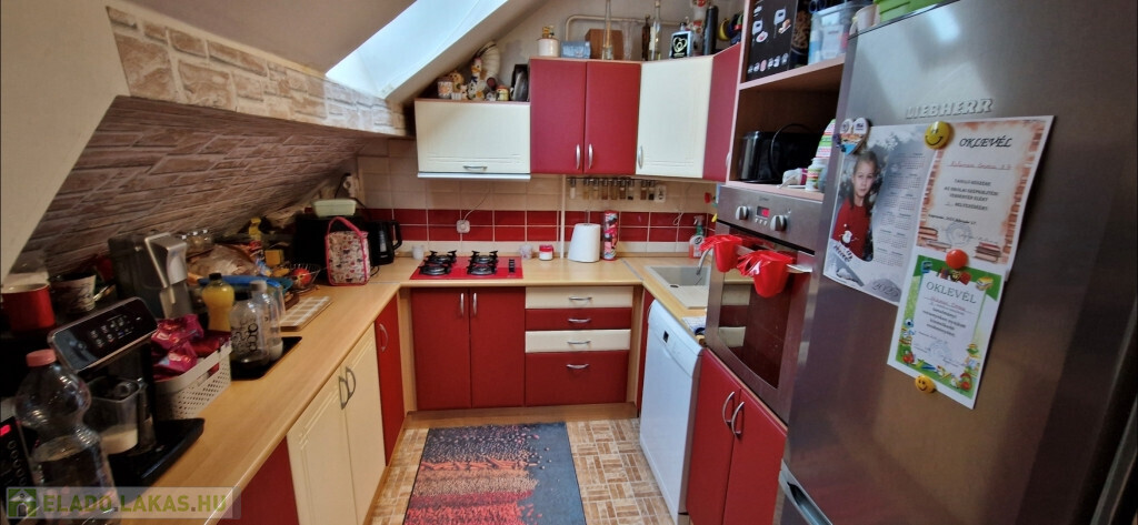 Kaposvár egyik kedvelt, csendes, nyugodt részén, a Zaranyi lakótelepen kínáljuk megvételre ezt a kiváló állapotú, első emeleti, belső kétszintes téglalakást. A társasház folyosójáról az előtérbe lépünk, majd a közlekedőből nyílik jobbra a külön kialakított fürdő és WC, balra pedig egy háló. Tovább haladva jutunk a tágas étkező-nappaliba, ami egylégterű a konyhával. Ide csatlakozik egy másik háló, illetve innen vezet fel a lépcső a galérián kialakított harmadik szobába. A lakás tetőtérbeépítéssel készült, így a falak és a mennyezet játékos felületeket, tereket hoznak létre, nem mindenhol a megszokott derékszögekkel találkozunk. A ház 1996-ban épült, de a külső nyílászárókat, valamint a bejárati ajtót két éve kicserélték. A fűtés egyedi gázos, Ariston gázkazán biztosítja a fűtést és a meleg vizet. Plusz légkondi berendezés szolgálja a komfortérzetet. A lakás alapterülete a tulajdoni lap szerint 67,3 m2, de ehhez még hozzáadódik a 22 m2-es galériás szoba, így ténylegesen 89,3 m2 áll rendelkezésre. Tartozik a lakáshoz több saját és egy közös tároló. A környéken minden megtalálható, ami a hétköznapi élethez szükséges.