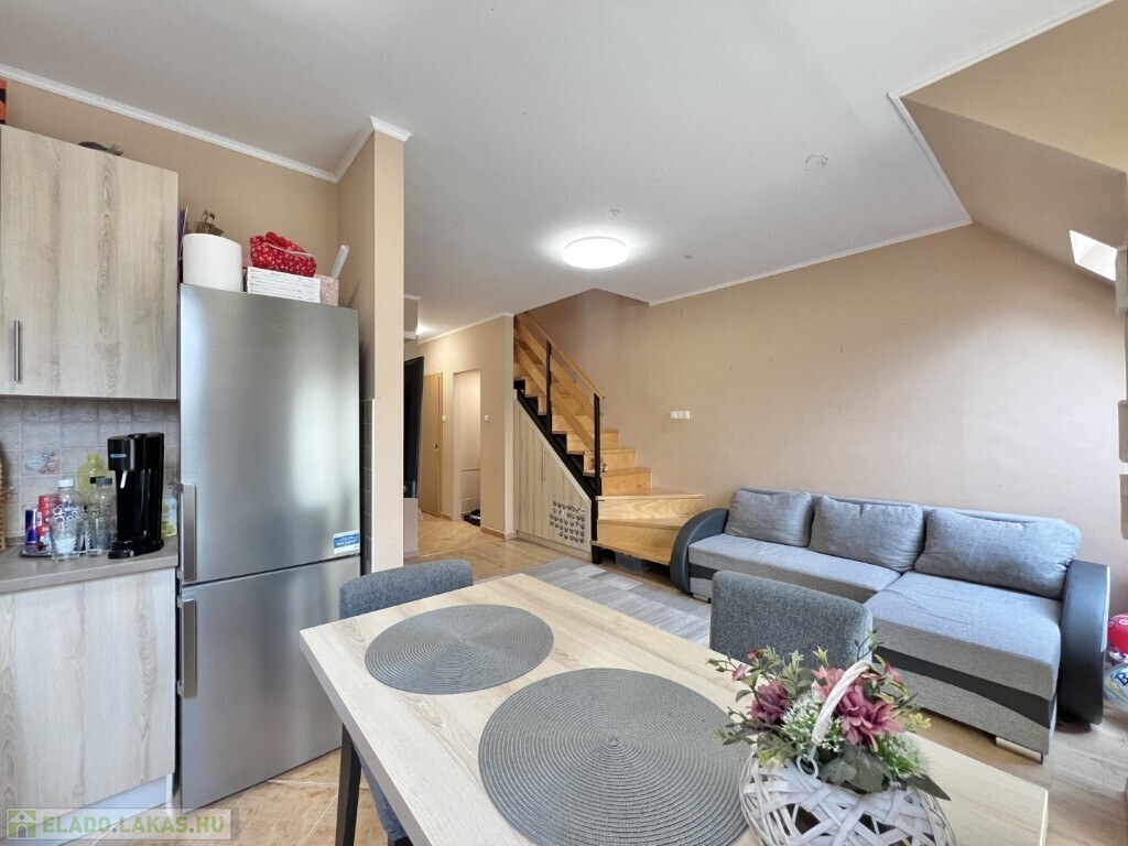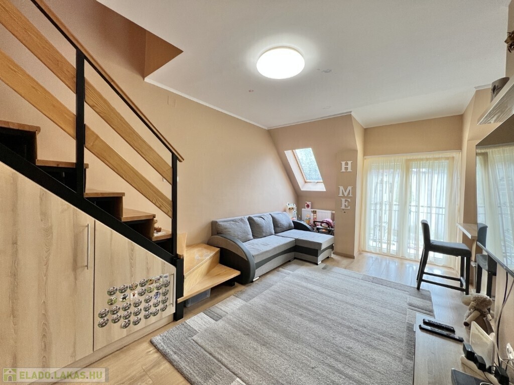 Kaposváron a belvárosban, a Németh I. fasor utcában - közvetlenül a kórház közelében - található rendezett társasház 2. emeletén lévő 62 m2-es, ideális elosztású, jó állapotú két szintes lakás eladó. A lakás alsó szintjén előszoba, nappali-étkező-konyha, 1 szoba, erkély, fürdőszoba, wc helyiségek találhatóak. A felső szinten kisebb előszoba, 2 szoba, fürdőszoba-wc kerültek kialakításra. A lakás rezsi költsége nagyon kedvező, a fűtés és meleg víz ellátást házközponti fűtés biztosítja, továbbá a tetőtérbe légkondicionálót szereltetett fel a tulajdonos. A lakáshoz tartozik tároló is, illetve a társasháznak nagyon szép, rendezett udvara van, ahová 1 személyautóval ingyenesen tud parkolni a lakás tulajdonosa. Energetikai besorolás: E