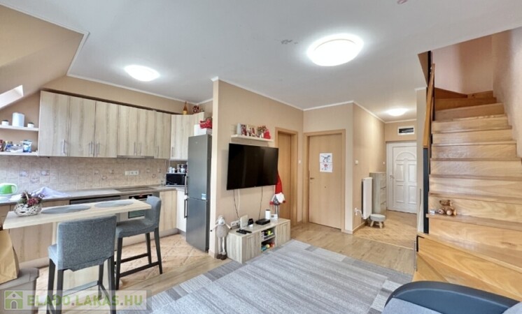 Kaposváron a belvárosban, a Németh I. fasor utcában - közvetlenül a kórház közelében - található rendezett társasház 2. emeletén lévő 62 m2-es, ideális elosztású, jó állapotú két szintes lakás eladó. A lakás alsó szintjén előszoba, nappali-étkező-konyha, 1 szoba, erkély, fürdőszoba, wc helyiségek találhatóak. A felső szinten kisebb előszoba, 2 szoba, fürdőszoba-wc kerültek kialakításra. A lakás rezsi költsége nagyon kedvező, a fűtés és meleg víz ellátást házközponti fűtés biztosítja, továbbá a tetőtérbe légkondicionálót szereltetett fel a tulajdonos. A lakáshoz tartozik tároló is, illetve a társasháznak nagyon szép, rendezett udvara van, ahová 1 személyautóval ingyenesen tud parkolni a lakás tulajdonosa. Energetikai besorolás: E