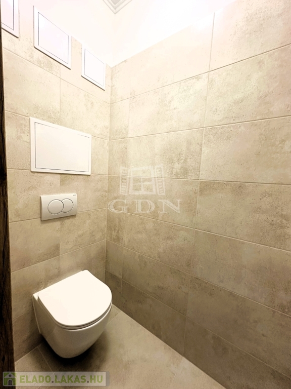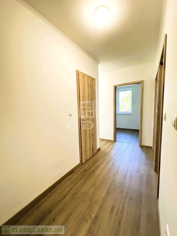 A B5 megjelölésű első emeleti lakás 72,8 m2 területű. Az amerikai konyhás nappalin túl 3 szoba, fürdőszoba, mellékhelyiség, közlekedő és előszoba kapott teret a lakásban. A közösségi térből közelíthető meg a 2 m2-es erkély.