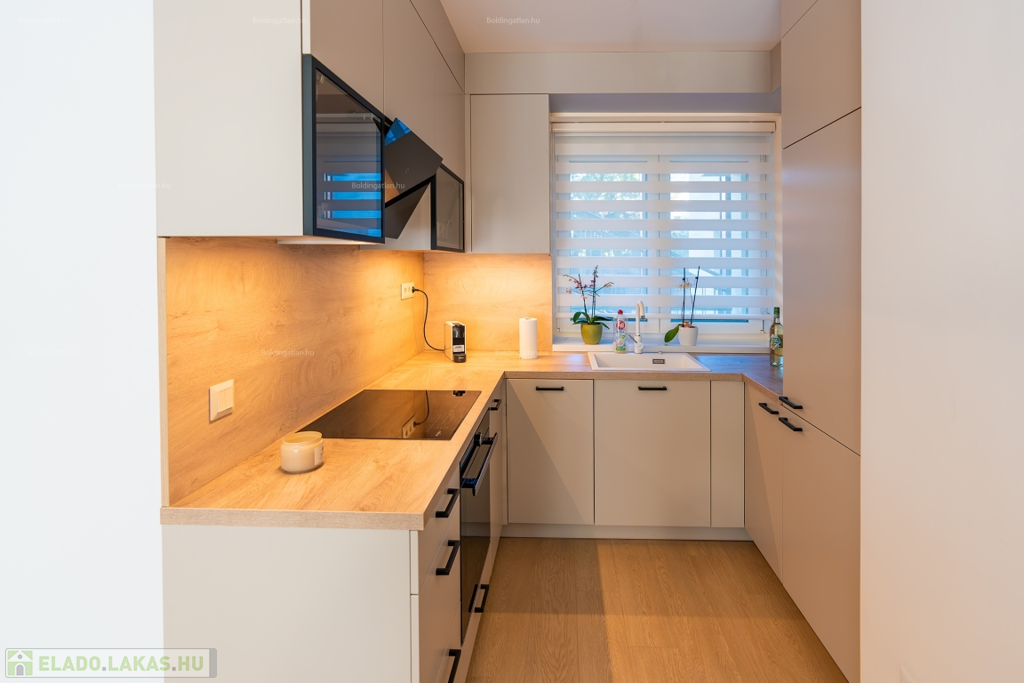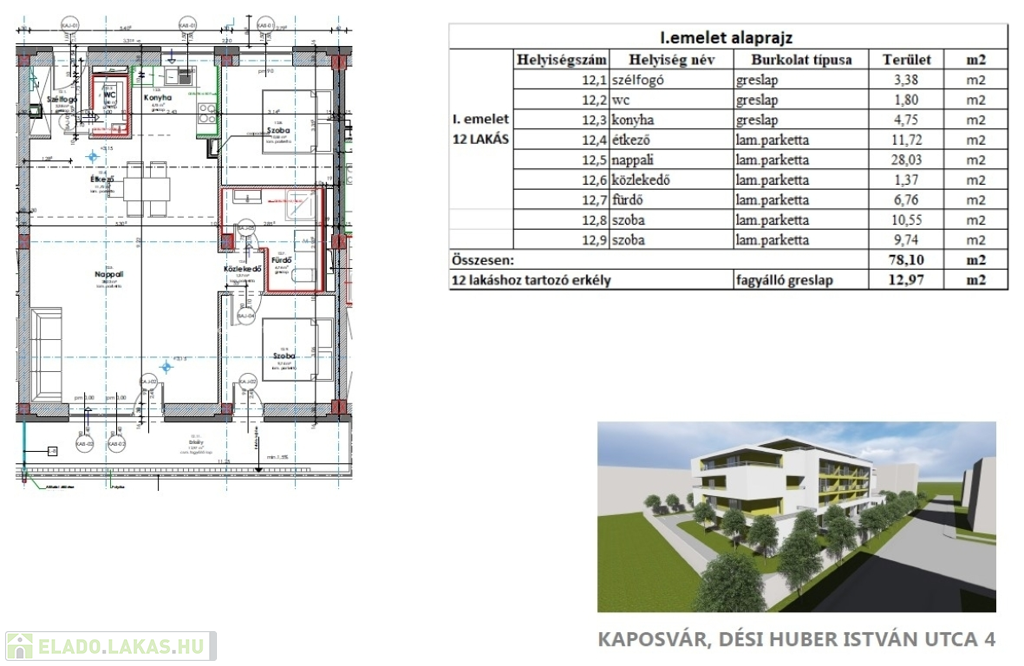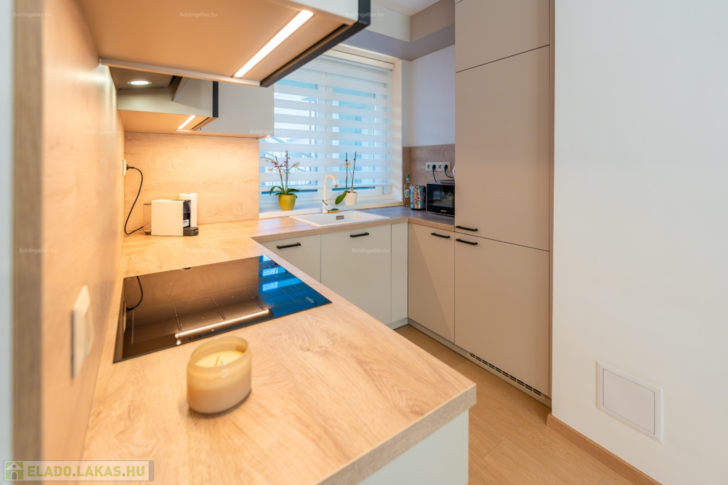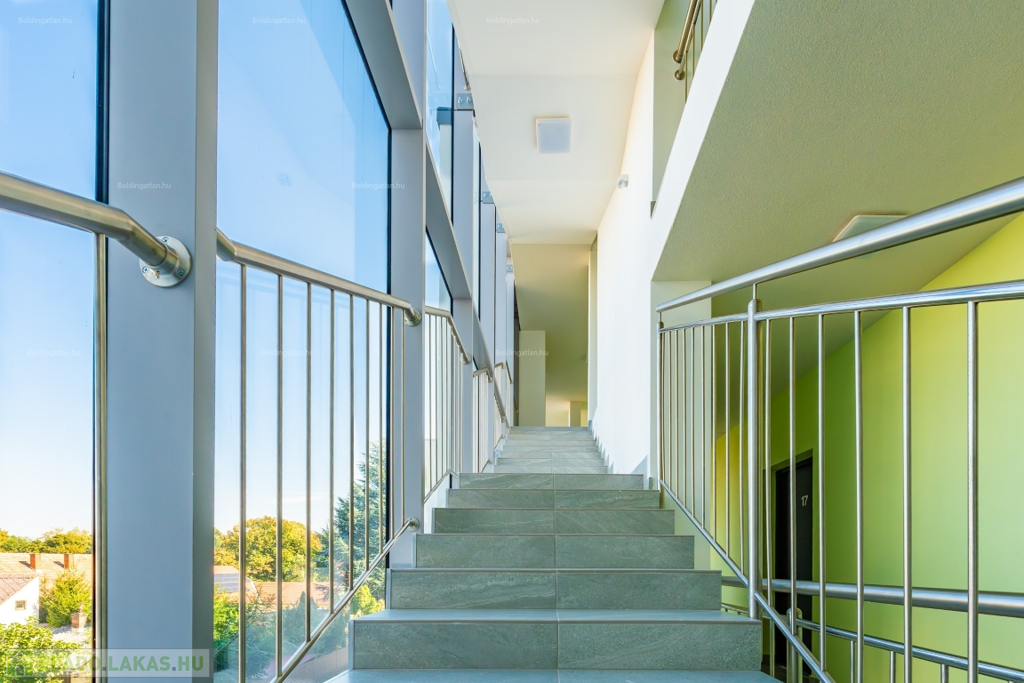 Kaposváron a belvárosban, a Dési Huber utcában - a kórház közelében - igényes kivitelben épült, modern architektúrájú 30 lakásos, új társasház 1. emeletén, 79 m2-es lakás 14 m2-es erkéllyel együtt eladó. A lakásban nappali-étkező-konyha, 2 szoba, közlekedő, szélfogó, fürdőszoba-wc, wc helyiségek kerültek kialakításra. Az épület korszerű energetikájú, a lakás fűtés levegő-víz hőszivattyús Nibe fűtésrendszerrel - padlófűtéssel, a fürdőszobában elektromos törölközőszárító radiátorral biztosított, továbbá a lakás hűtése Gree típusú Fan-coil rendszerrel történik, a fürdőszobában magas minőségű Wellis szerelvények kerültek beszerelésre. A lakás fűtéséhez, vagy hűtéséhez szükséges villamosenergiát az épület tetején elhelyezett napelemek biztosítják, a társasházban központi vízlágyító berendezés is beszerelésre került. A lakáshoz igény esetén 3.000.000.- Ft-ért az épület zárt udvarában 1 személyautó részére parkolóhely megvásárolható! Az ingatlan megvásárlásához CSOK igényelhető!