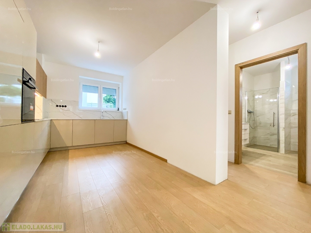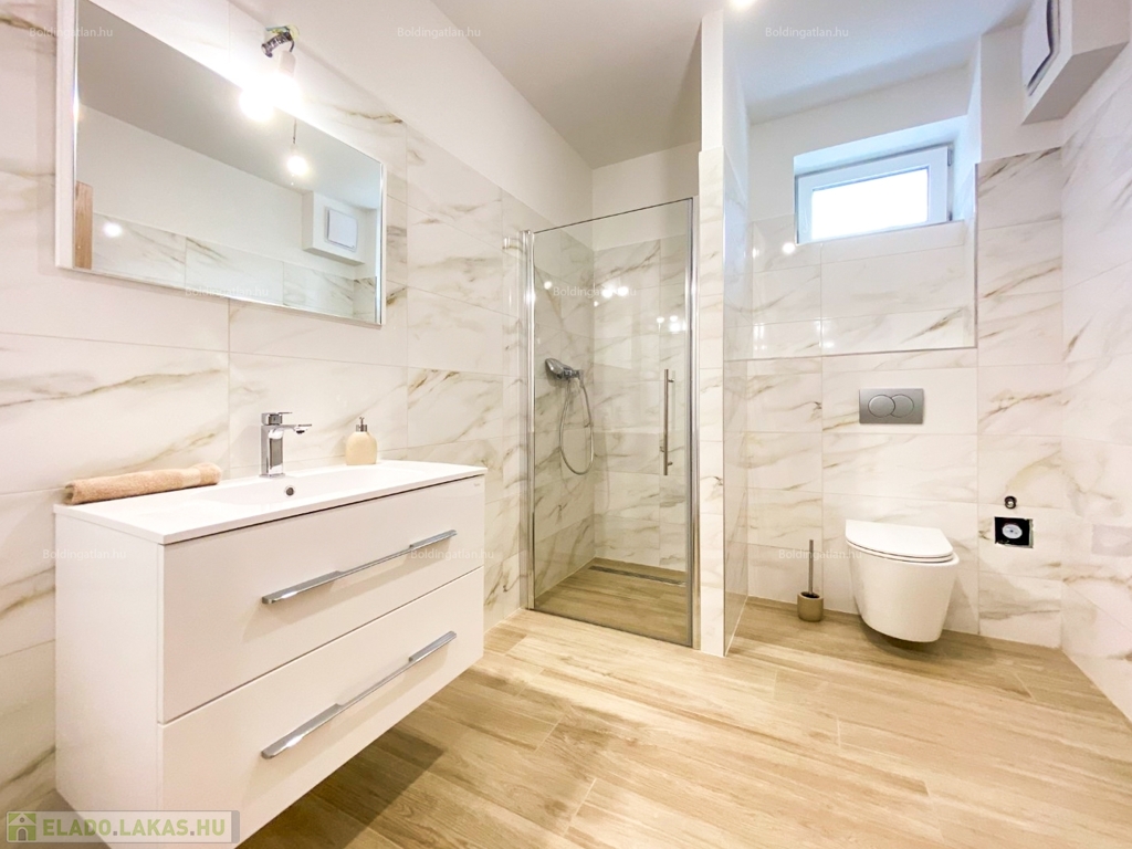 Kaposváron a belvárosban, a Dési Huber utcában - a kórház közelében - igényes kivitelben épült, modern architektúrájú 30 lakásos, új társasház földszintjén, 81 m2-es lakás, 17 m2-es terasszal együtt eladó. A lakásban nappali-étkező-konyha, 2 szoba, közlekedő, szélfogó, fürdőszoba, wc helyiségek kerültek kialakításra. Az épület korszerű energetikájú, a lakás fűtés levegő-víz hőszivattyús Nibe fűtésrendszerrel - padlófűtéssel, a fürdőszobában elektromos törölközőszárító radiátorral - van megoldva, továbbá a lakás hűtése fan-coil Gree rendszerrel történik. A lakás fűtéséhez, vagy hűtéséhez szükséges villamosenergiát az épület tetején elhelyezett napelemek biztosítják, a társasházban központi vízlágyító berendezés is beszerelésre került. A fürdőszobában magas minőségű Wellis szerelvények kerültek beszerelésre. A lakáshoz igény esetén 3.000.000.- Ft-ért az épület zárt udvarában 1 személyautó részére parkolóhely megvásárolható! Az ingatlan megvásárlásához CSOK igényelhető!