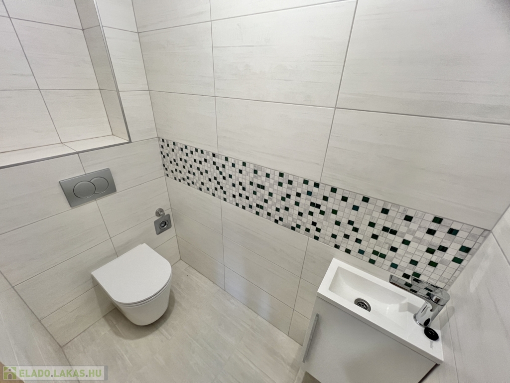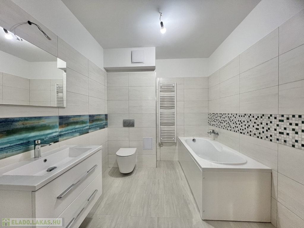 Kaposváron a belvárosban, a Dési Huber utcában - a kórház közelében - igényes kivitelben épült, modern architektúrájú 30 lakásos, új társasház földszintjén, 81 m2-es lakás, 16 m2-es terasszal együtt eladó. A lakásban nappali-étkező-konyha, 2 szoba, közlekedő, szélfogó, fürdőszoba, wc helyiségek kerültek kialakításra. Az épület korszerű energetikájú, a lakás fűtés levegő-víz hőszivattyús Nibe fűtésrendszerrel - padlófűtéssel, a fürdőszobában elektromos törölközőszárító radiátorral - van megoldva, továbbá a lakás hűtése fan-coil Gree rendszerrel történik. A lakás fűtéséhez, vagy hűtéséhez szükséges villamosenergiát az épület tetején elhelyezett napelemek biztosítják, a társasházban központi vízlágyító berendezés is beszerelésre került. A fürdőszobában magas minőségű Wellis szerelvények kerültek beszerelésre. A lakáshoz igény esetén 3.000.000.- Ft-ért az épület zárt udvarában 1 személyautó részére parkolóhely megvásárolható! Az ingatlan megvásárlásához CSOK igényelhető!