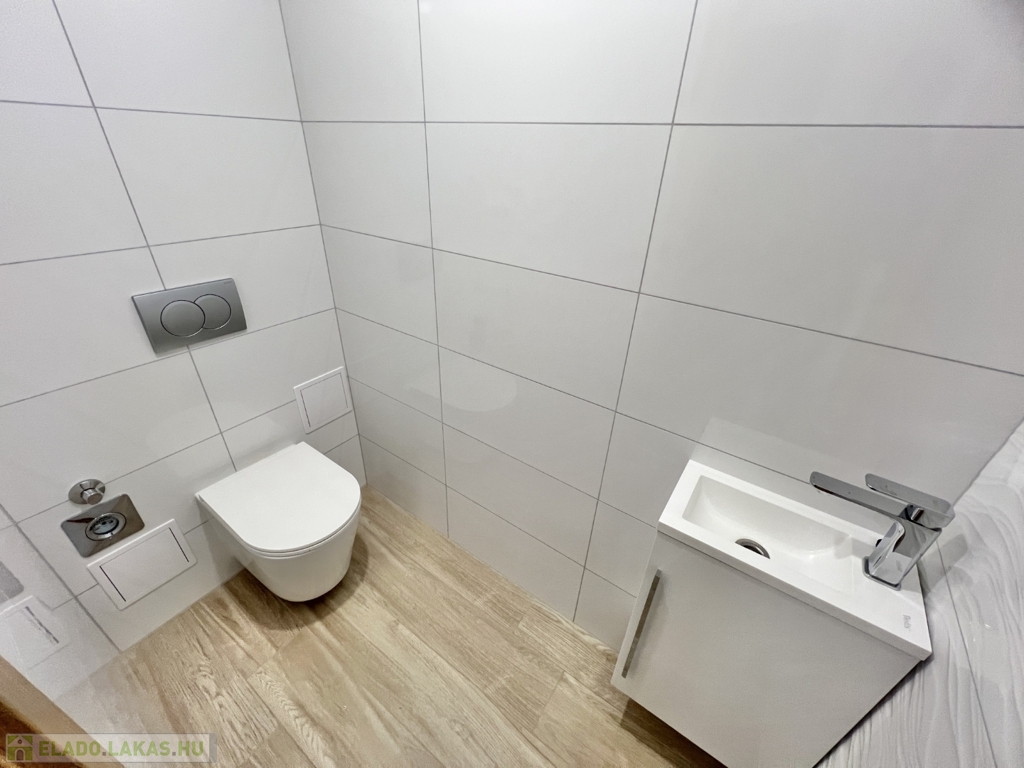 Kaposváron a belvárosban, a Dési Huber utcában - a kórház közelében - igényes kivitelben épült, modern architektúrájú 30 lakásos, új társasház földszintjén, 86 m2-es lakás, 20 m2-es terasszal együtt eladó. A lakásban nappali-étkező-konyha, 2 szoba, közlekedő, szélfogó, fürdőszoba, wc helyiségek kerültek kialakításra. Az épület korszerű energetikájú, a lakás fűtés levegő-víz hőszivattyús Nibe fűtésrendszerrel - padlófűtéssel, a fürdőszobában elektromos törölközőszárító radiátorral - van megoldva, továbbá a lakás hűtése fan-coil Gree rendszerrel történik. A lakás fűtéséhez, vagy hűtéséhez szükséges villamosenergiát az épület tetején elhelyezett napelemek biztosítják, a társasházban központi vízlágyító berendezés is beszerelésre került. A fürdőszobában magas minőségű Wellis szerelvények kerültek beszerelésre. A lakáshoz igény esetén 3.000.000.- Ft-ért az épület zárt udvarában 1 személyautó részére parkolóhely megvásárolható! Az ingatlan megvásárlásához CSOK igényelhető!Energetikai besorolás B