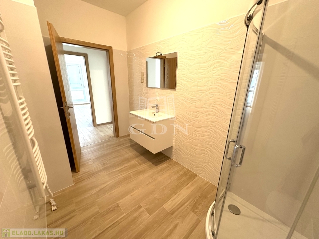 A 13-as számú lakás nettó fűtött alapterülete 81 m2, melyhez egy fantasztikus, kuriózumnak tekinthető 53 m2-es erkély is tartozik. A lakásban a tágas és világos amerikai konyhás nappalin túl további 2 szoba, előtér, fürdőszoba, mellékhelyiség, közlekedő és egy kamra került kialakításra.