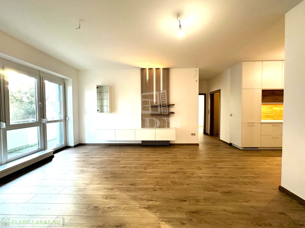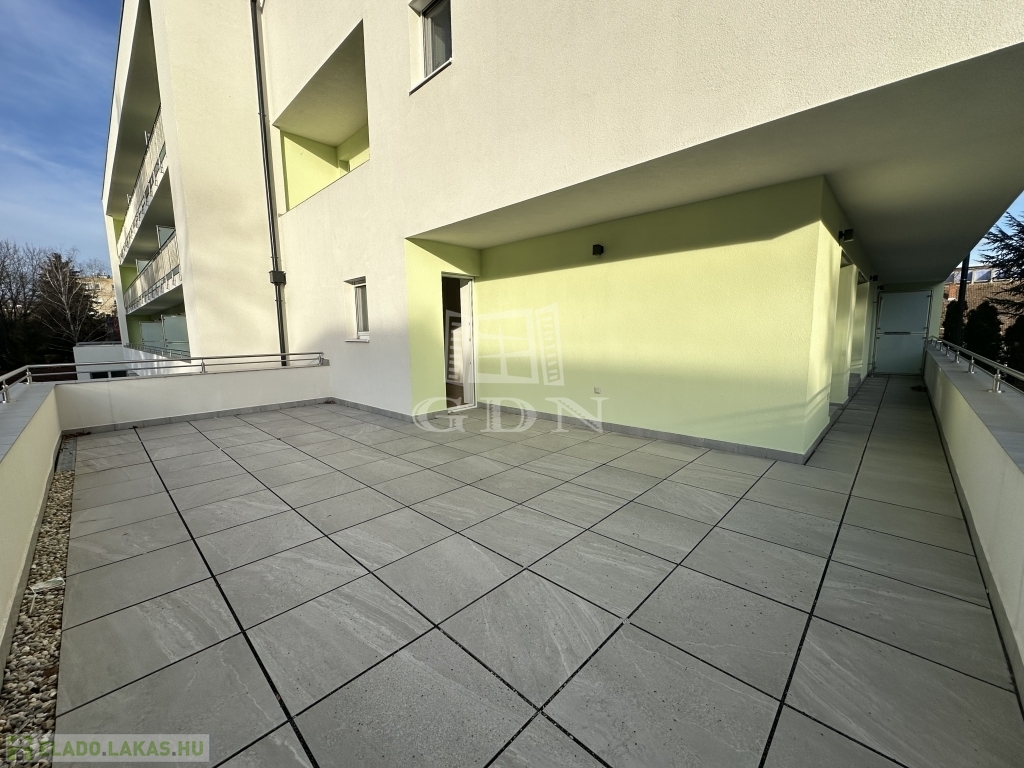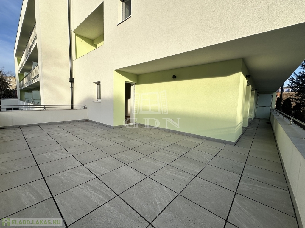 A 9-es számú lakáshoz egy fantasztikus, kuriózumnak tekinthető 53 m2-es erkély is tartozik. A lakásban a tágas és világos amerikai konyhás nappalin túl további 2 szoba, előtér, fürdőszoba, mellékhelyiség, közlekedő és egy kamra került kialakításra.