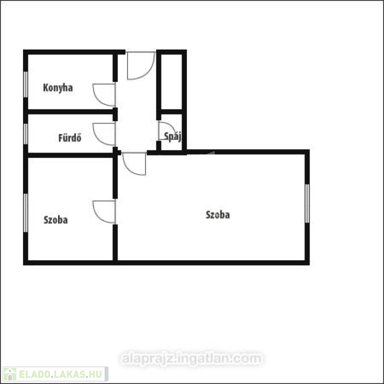 Alsó szinten egy 19 nm szoba, konyha, wc, fürdőszoba tusolóval.