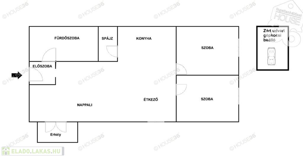 zárt udvari gépkocsi beálló, amelyet az ár tartalmaz!