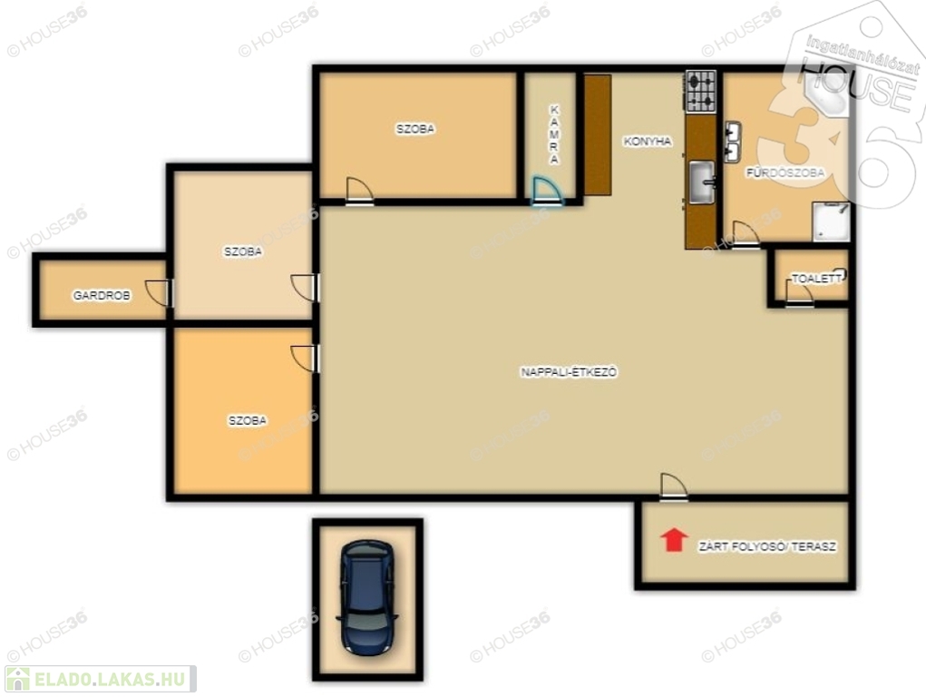 Csak nálunk keresse! Nappali + 3 szoba + gardrób + garázs!