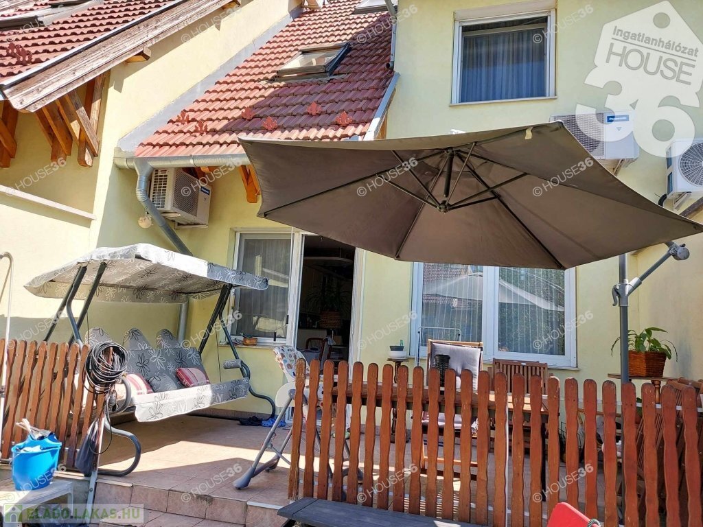 A modern, 2003-ban épült 100 m2-es, 3 szintes, tetőtér beépítéses sorház 2013-ban esztétikailag és műszakilag is megújult.