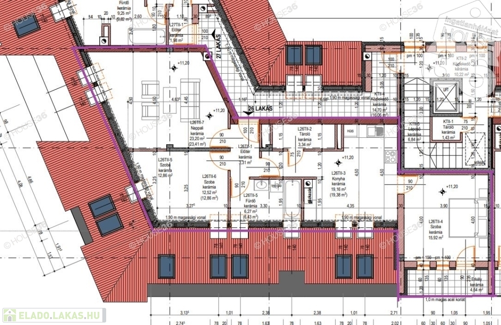 27 lakásos, 5 szintes, liftes épület.