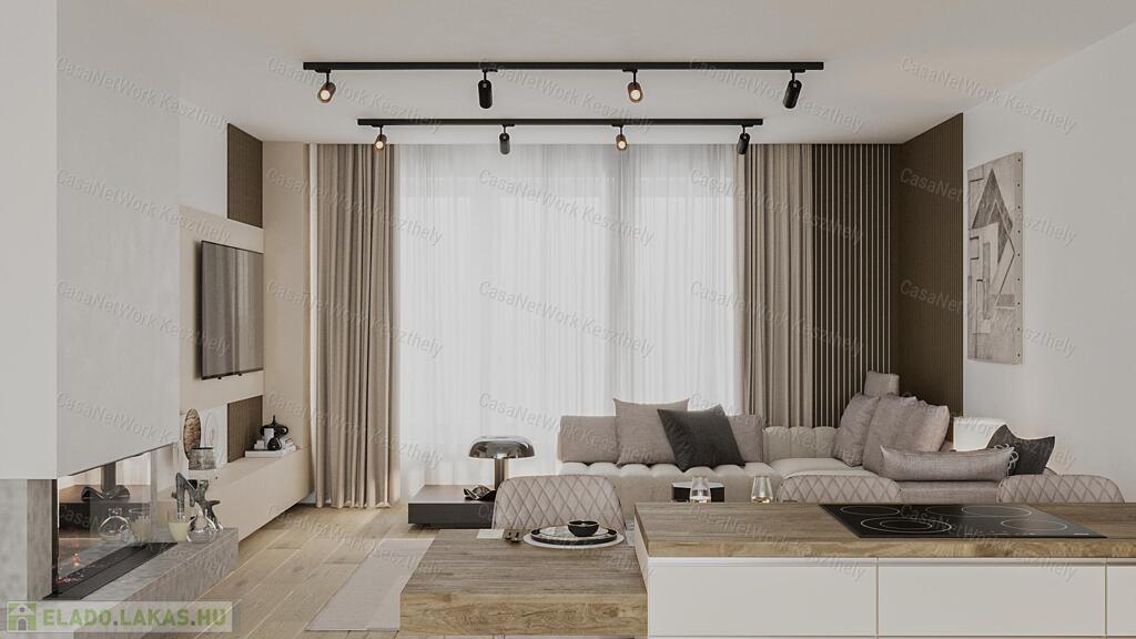 Keszthely frekventált és keresett városrészében eladó 2023-as átadással dupla komfortos 140 m2-es lakás +30 m2-es terasszal, 2 db kocsibeállóval, elektromos kapuval és saját kerttel!
